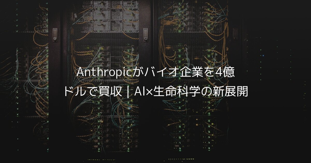 AI大手のAnthropicが、バイオテクノロジースタートアップのCoefficient Bioを約4億ドル(約600億円)で買収したと報じられました。大規模言語モデルの開発で知られるAnthropicが、なぜ生命科学の領域に踏み込むのか。この動きはAI業界全体の方向性を示す重要なシグナルといえます。